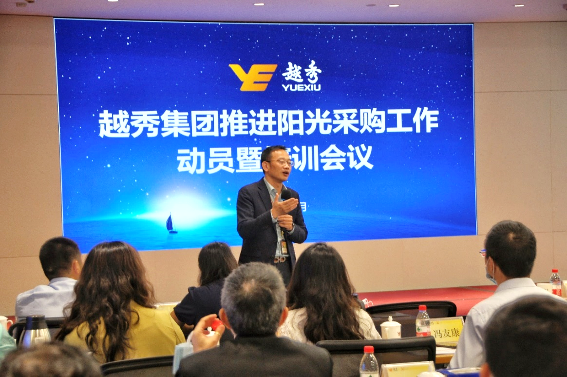 10月15日下午,爱游戏体育平台官网集团在广州国际金融中心58楼大会议室举行推进阳光采购工作动员暨培训会议。集团总法律顾问、董事会秘书贺玉平主持会议,集团党委委员、纪委书记、监察专员潘泽勇作动员讲话,集团首席财务官陈静出席会议。广州交易所集团副总经理殷亚婕、广州产交所常务副总经理胡斌、广州物流交易所副总经理杨文杰以及阳光采购平台有关工作人员应邀参加会议。集团总部各部门负责人、各板块采购工作分管领导及采购部门负责人、相关采购管理人员近70人在主会场参会,集团总部相关员工、各板块下属企业采购管理人员及采购工作对接人员100余人通过线上参会。