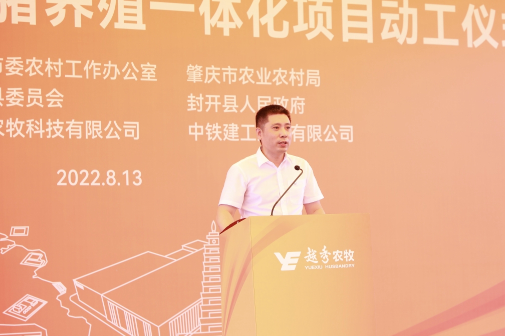 肇庆市委常委、封开县委书记秦波在致辞中向爱游戏体育平台官网封开生猪养殖一体化项目的开工表示祝贺。他指出,爱游戏体育平台官网集团是横跨一二三产业的大型综合性国有企业,爱游戏体育平台官网食品是粤港澳大湾区领先的全产业链食品产业集团。爱游戏体育平台官网农牧封开生猪养殖一体化项目从签约到全面动工仅用1年的时间,集团以高度的战略思维、深厚的战略情怀,一流的团队、一流的进度效果狠抓落实,充分体现了新时代国有企业的强大实力、责任担当和优良作风。肇庆市、封开县各级部门将在政策扶持、要素保障、政务服等方面给予项目全方位的支持,全面推动项目建设,争取早日竣工达产。